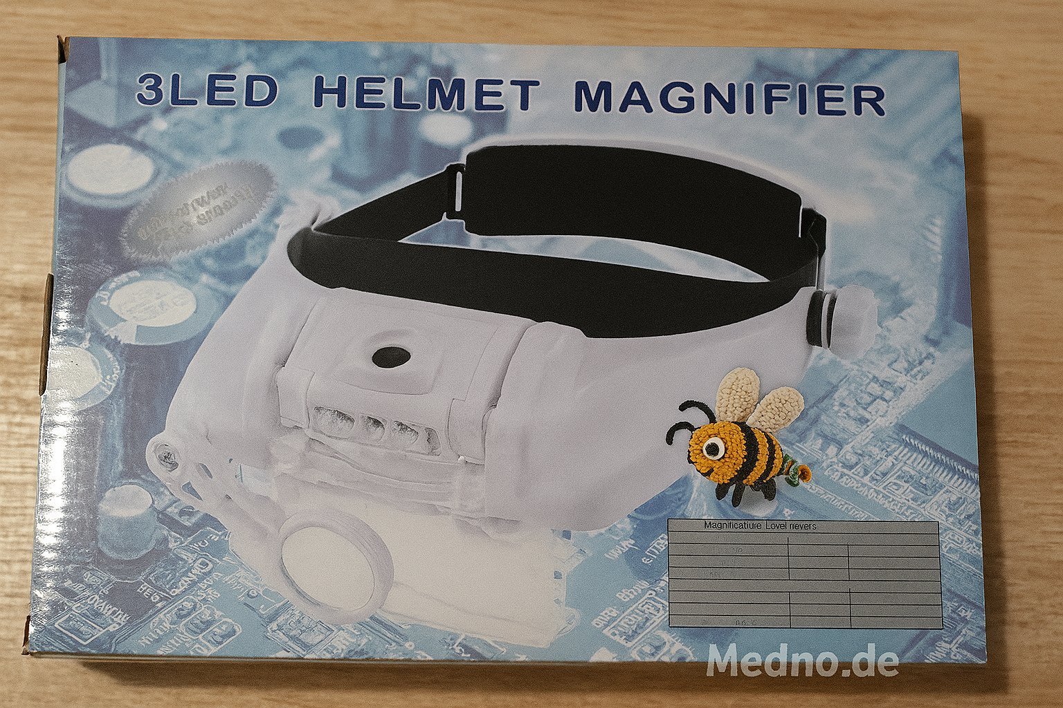 | Nutzung | Passende Linse einsetzen, Kopfband anpassen, LED einschalten bei Bedarf |