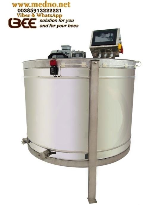Vrcaljka ima električni pogon sa snažnim motorom od 0,25kW koji preko reduktora direktno okreće osovinu košare. Reduktor ima prijenosni omjer 1:5, što na izlazu omogućuje maksimalan broj okretaja od 280 okretaja u minuti i time ograničava maksimalnu brzinu vrtnje na razinu sigurnog rada. Motor se napaja na 220V i nalazi se na gornjoj strani vrcaljke, na letvi. Upravljanje radom motora i samim procesom vrši se pomoću frekvencijskog regulatora. Preko ovog elementa automatizacije mogu se podesiti parametri kao što su broj ciklusa (koraka), brzina vrtnje, vrijeme vrtnje i smjer svakog pojedinačnog ciklusa. Kombinacijom više ciklusa (koraka) i parametara unutar njih definira se automatski program rada, što dodatno osigurava pčelaru jednostavnost korištenja i ponovljivost ciklusa. Prijelaz između ciklusa, promjena s niže na višu brzinu ili promjena smjera odvija se automatski, kao i zaustavljanje vrcaljke na kraju unaprijed zadanog vremena.