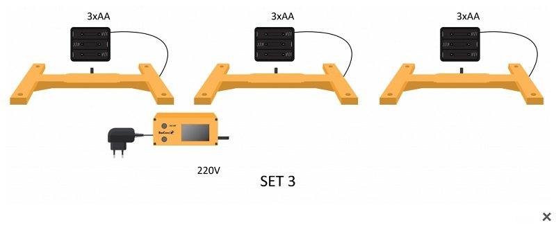 BeeConn set 3 je bežični nadzorni uređaj koji pčelaru omogućuje redovito praćenje i dobivanje informacija u stvarnom vremenu o zbivanjima u dvije košnice na istoj lokaciji (u krugu od 1000 m). BeeConn set 3 je dobar izbor ako lokacija vaše košnice ima strujnu utičnicu ili ako vaša košnica nema strujnu utičnicu, ali imate strujnu utičnicu unutar 1000 m udaljenosti u koju možete uključiti gateway.